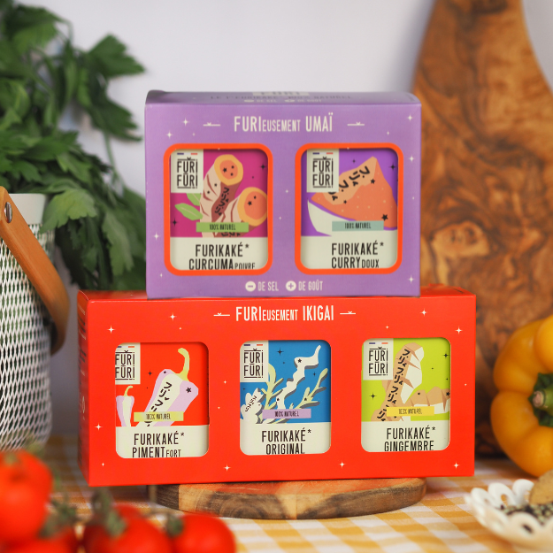 FURIFURI est un furikake 100% naturel fabriqué en France : un super mélange de graines de sésame, algues de Bretagne et plein d'ingrédients très très bons. FURIFURI permet de réduire sa consommation de sel et apporte peps, goût et croquant à tous les encas et petits plats du quotidien !