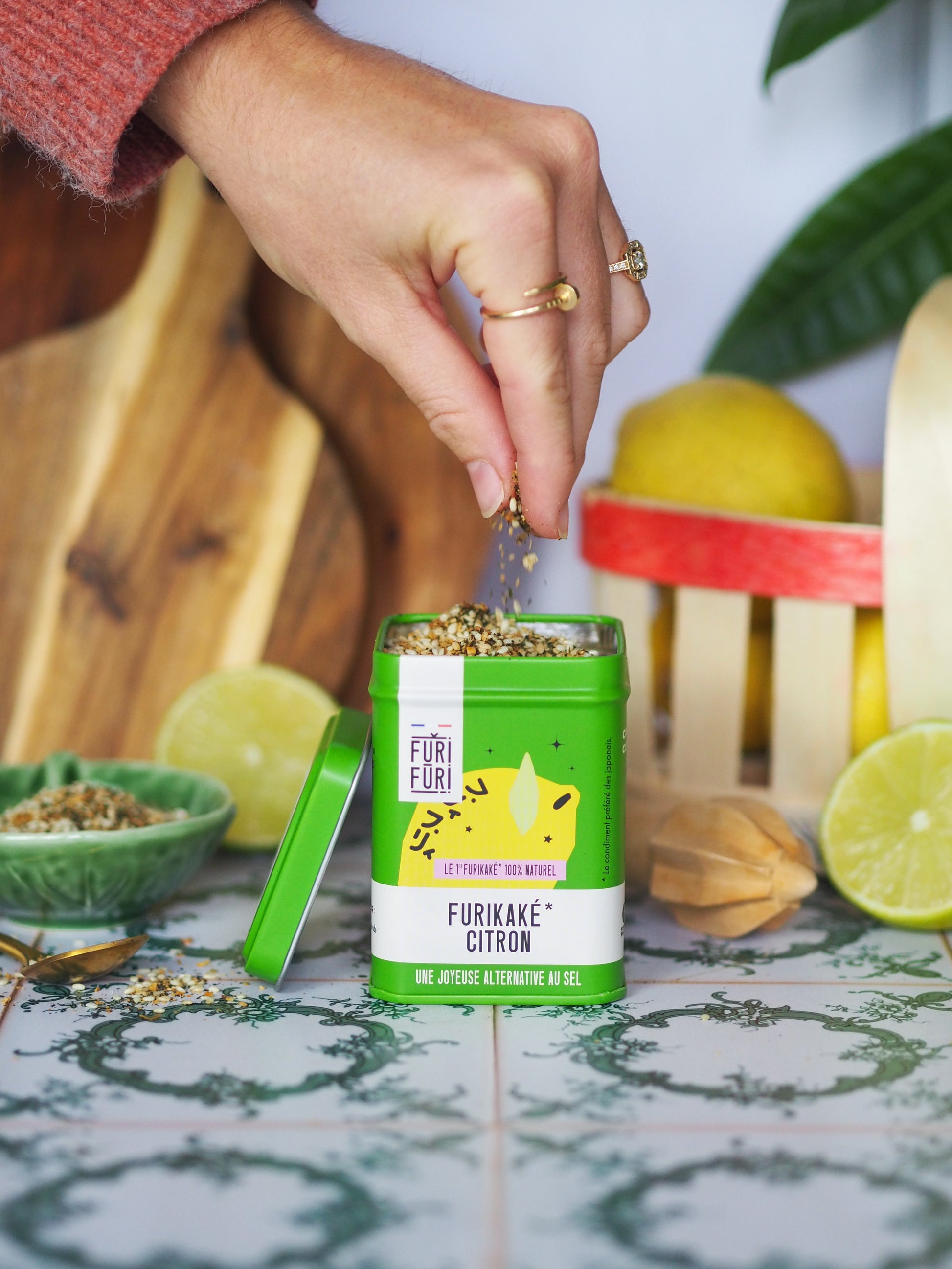 -FURIFURI Citron : un clin d’œil à nos origines méditerranéennes (nous sommes basés à Nice). Spécialement riche en vitamine C et vitamine B9, il apporte une bonne dose de peps à vos assiettes. C’est bon pour le moral et pour la santé !