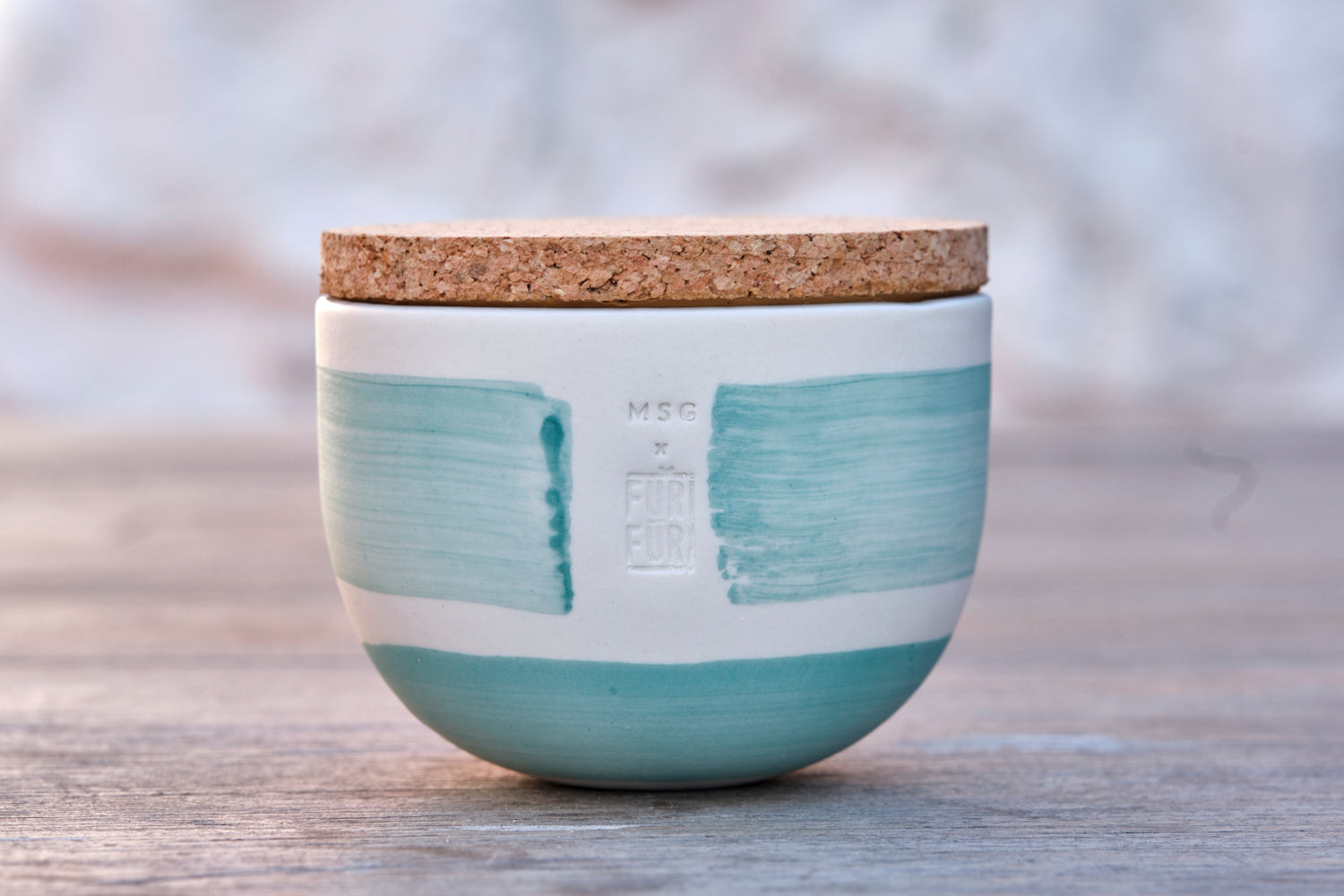 Vallauris-based ceramicist Maureen has entirely handcrafted and decorated this small porcelain pot in the FURIFURI colors. A pretty little cork lid closes the pot: perfect for leaving your FURIFURI on the table when you have guests!